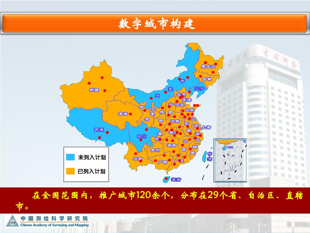数字城市构建 在全国范围内,推广城市120余个,分布在29个省、自治区、直辖市。