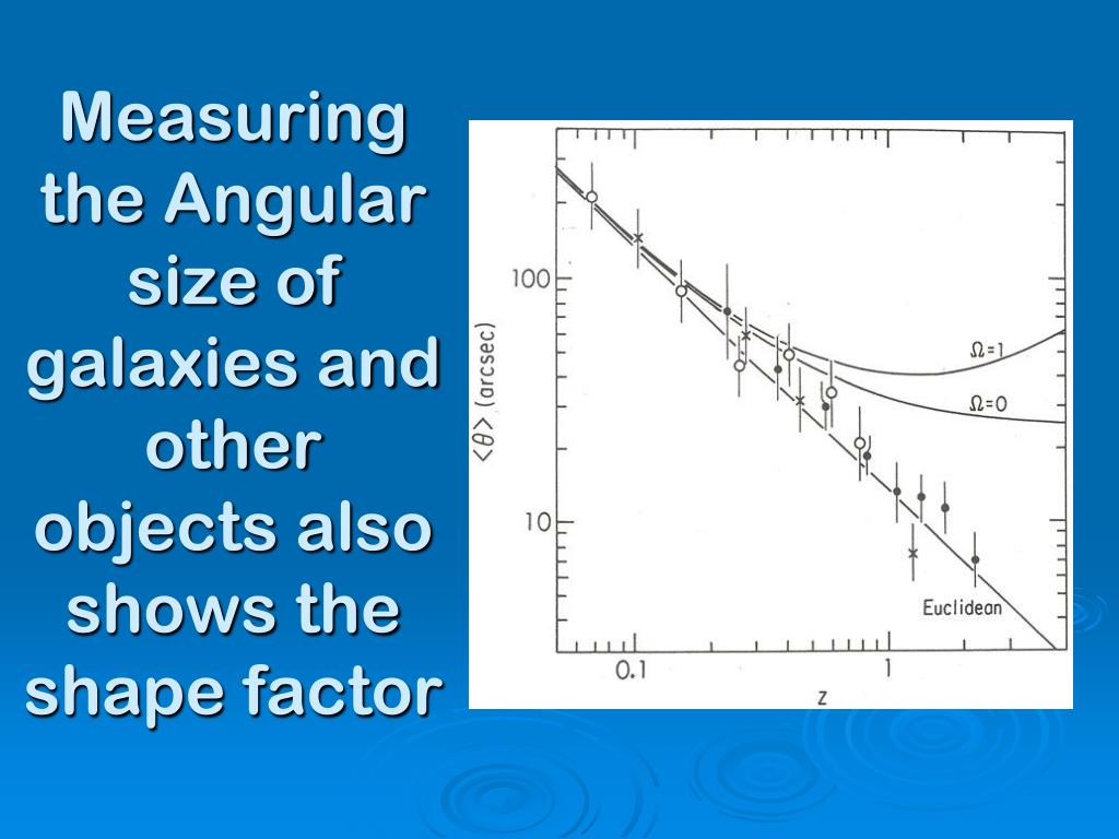 Measuring the Angular size of galaxies and other objects also shows the shape factor