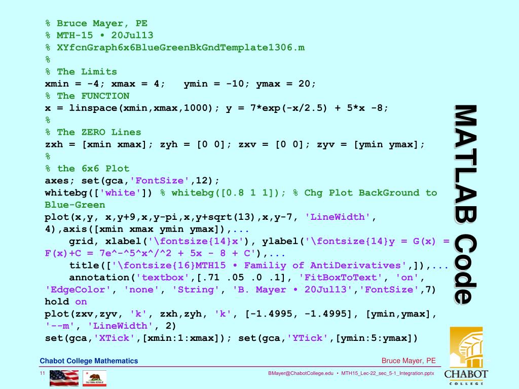 Chabot Mathematics. §5.1 Integration. Bruce Mayer, PE Licensed Electrical & Mechanical Engineer BMayer@ChabotCollege.edu. 4.4. Review §. Any QUESTIONS About §4.4 → Exp & Log Math Models Any QUESTIONS About HomeWork §4.4 → HW-21. §5.1 Learning Goals. Define AntiDerivative