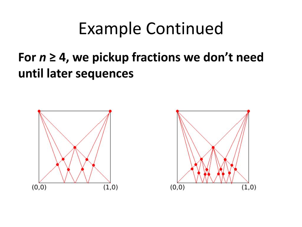 Example Continued For n ≥ 4, we pickup fractions we don’t need until later sequences