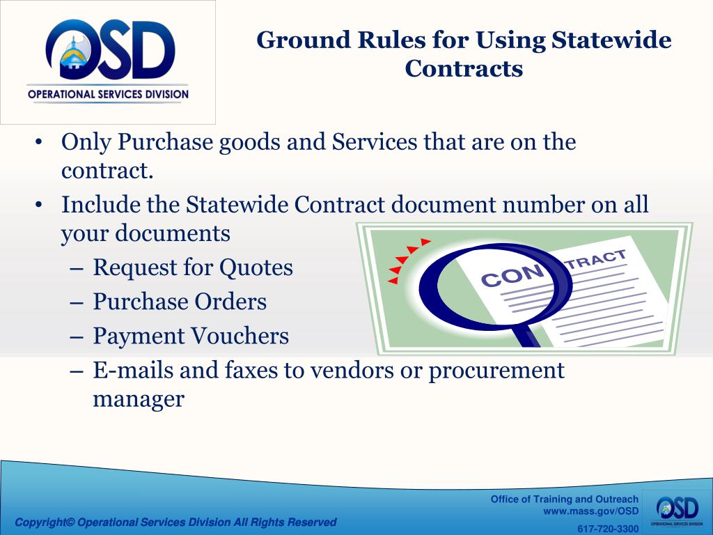 Welcome to the Operational Services Division Commonwealth of Massachusetts. How to Use Statewide Contracts & Navigating Comm-PASS. Agenda. What is a Statewide Contract How to locate Statewide Contracts How to use Statewide Contracts OSD Updates Money Saving Opportunities