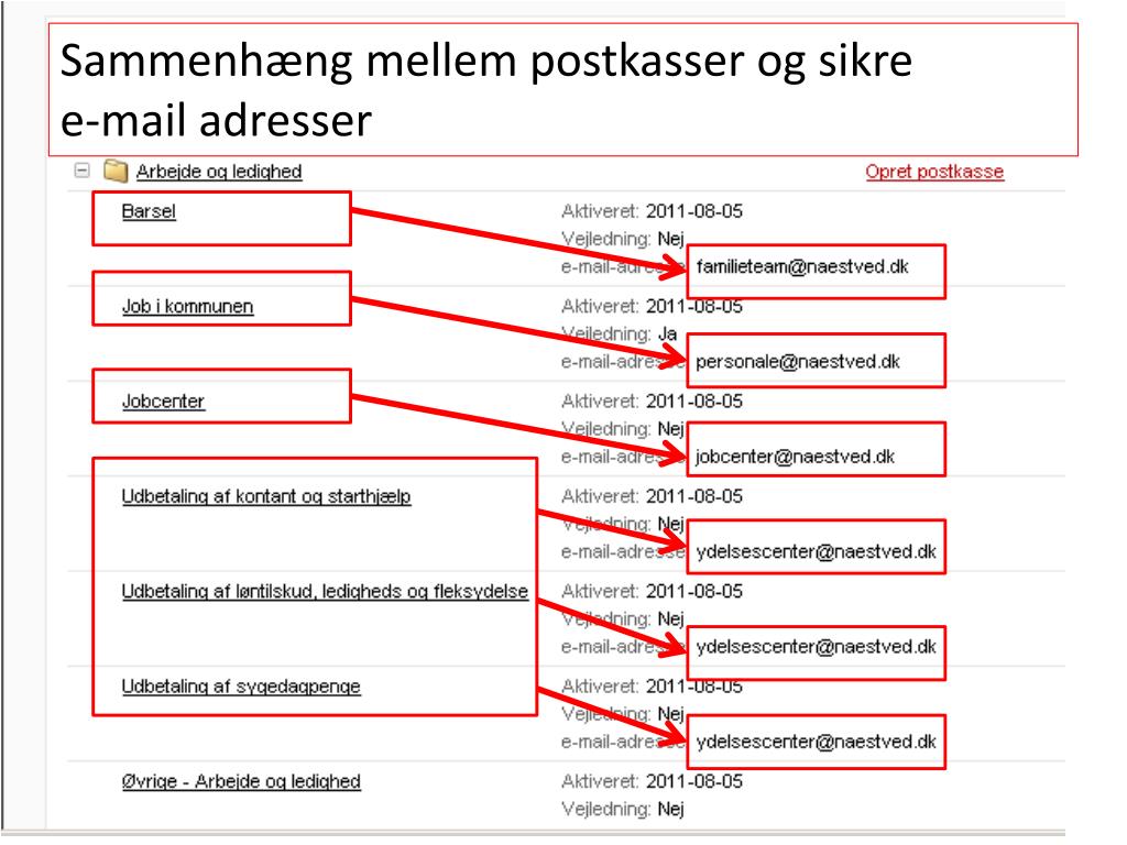 Sammenhæng mellem postkasser og sikre e-mail adresser