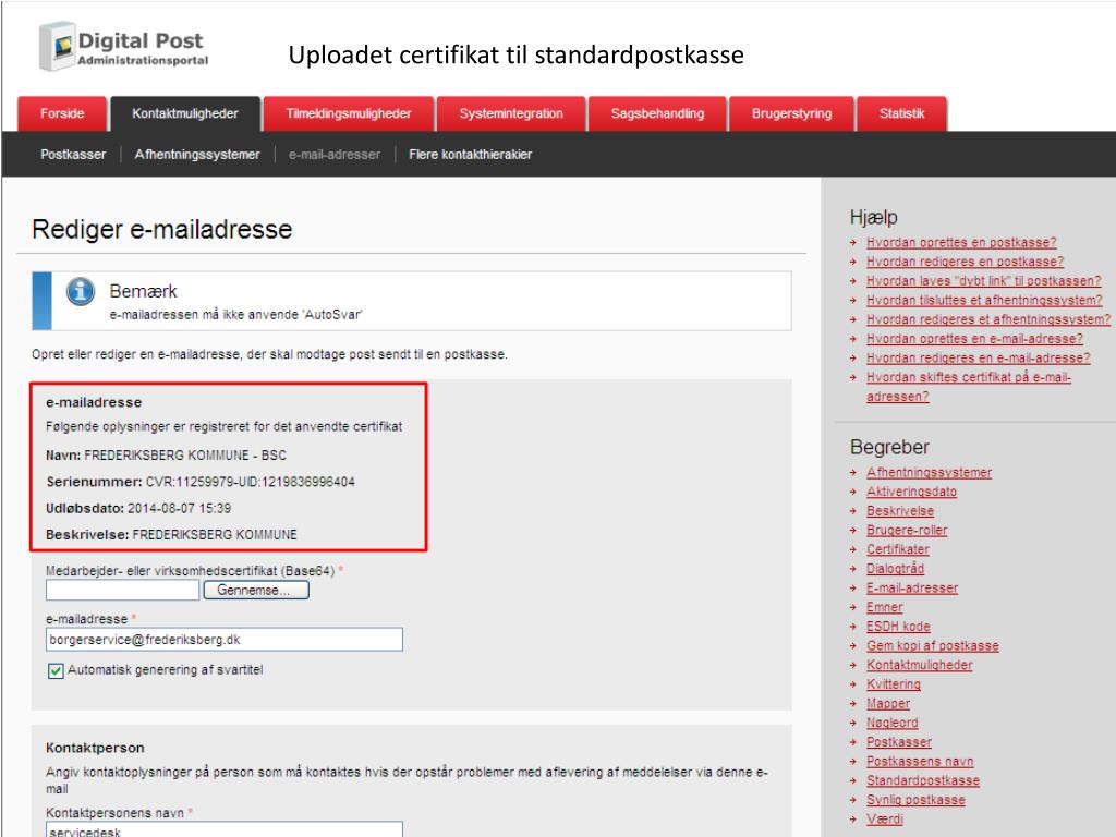 Fejlkilder • Teknik systemopsætning og vedligehold • Fejl i Digital Post Administrationsportalen • Fejl i opsætningen af: • Postkasser. • Afsendersystem. • Tilmeldingsgruppe og materiale. • Udløb af: • Uploadet certifikat til standardpostkasse. • Uploadet certifikat i (standard) afsendersystem. • Nedlæggelse af modtager e-mail adresse. • Fejl i modtagersystem og afsendersystem.