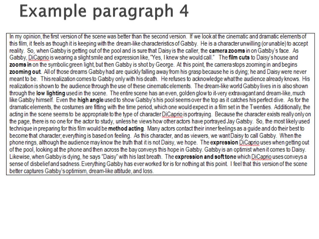Paragraph 4 • In your opinion, which scene is the better version? Defend your answer using specific evidence from your notes and from the film unit. • See the next slide for an example and type your Paragraph 4.