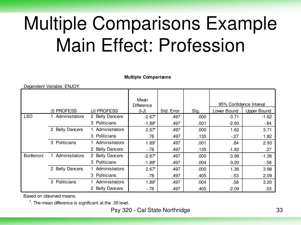 Multiple Comparisons ExampleMain Effect: Profession Psy 320 - Cal State Northridge