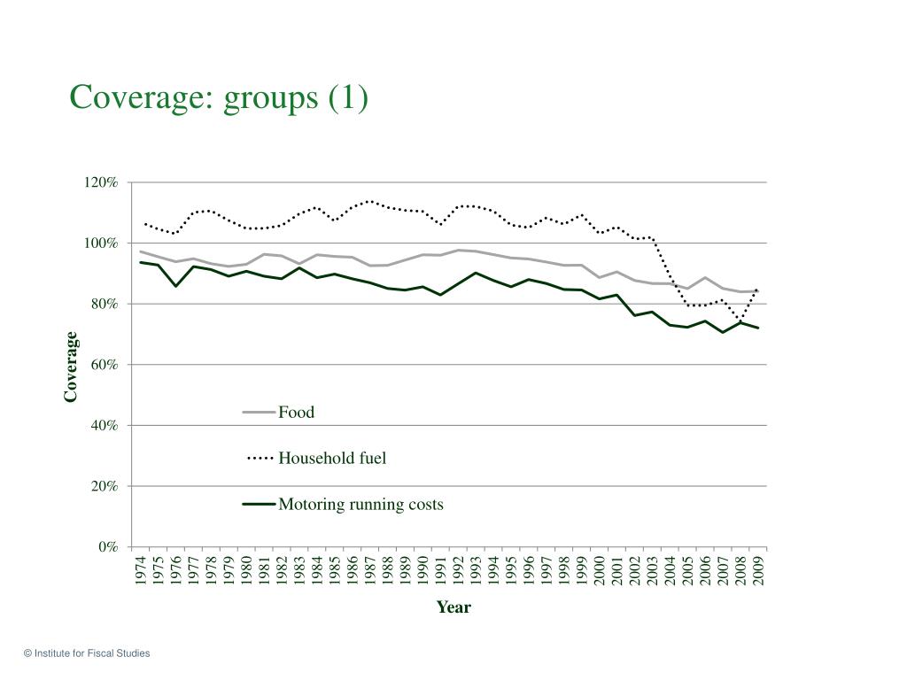 Where in the distribution of household expenditure (or of income) is this under-recording happening? • There must be serious under-recording at the top of the expenditure distribution (these are aggregate numbers so are dominated by effect of those who spend the most) • But is there more happening at the bottom of the expenditure distribution? • Look at expenditure coverage by category