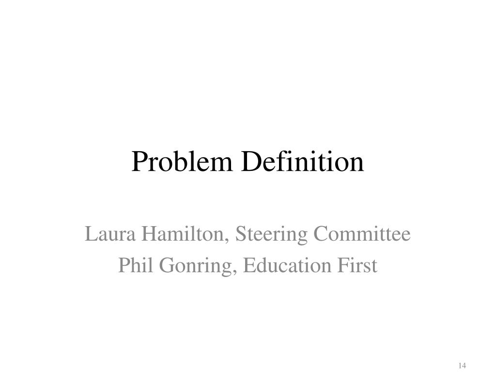 Problem Definition Laura Hamilton, Steering Committee Phil Gonring, Education First
