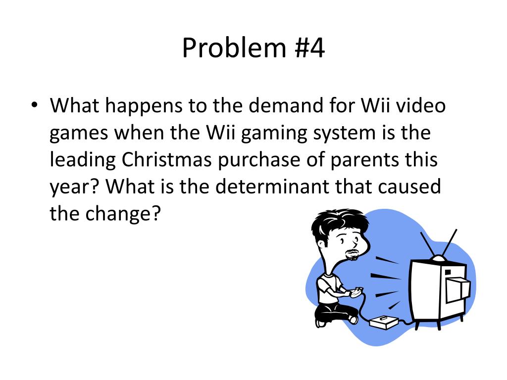 Problem #4 • What happens to the demand for Wii video games when the Wii gaming system is the leading Christmas purchase of parents this year? What is the determinant that caused the change?
