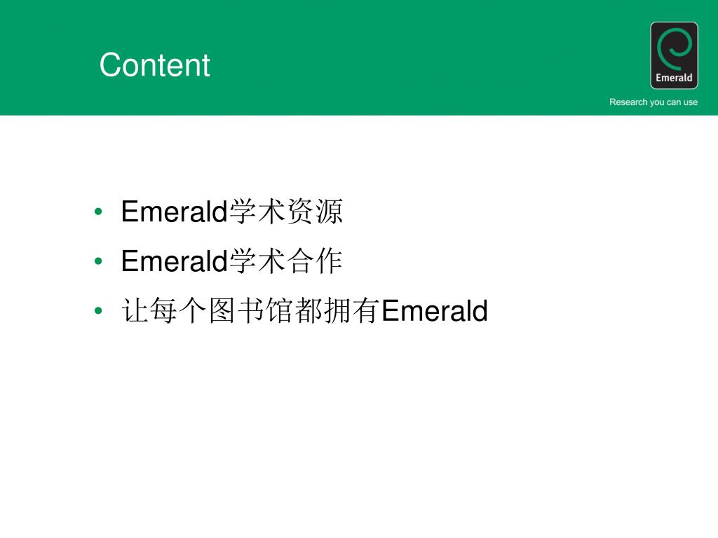 Content • Emerald学术资源 • Emerald学术合作 • 让每个图书馆都拥有Emerald
