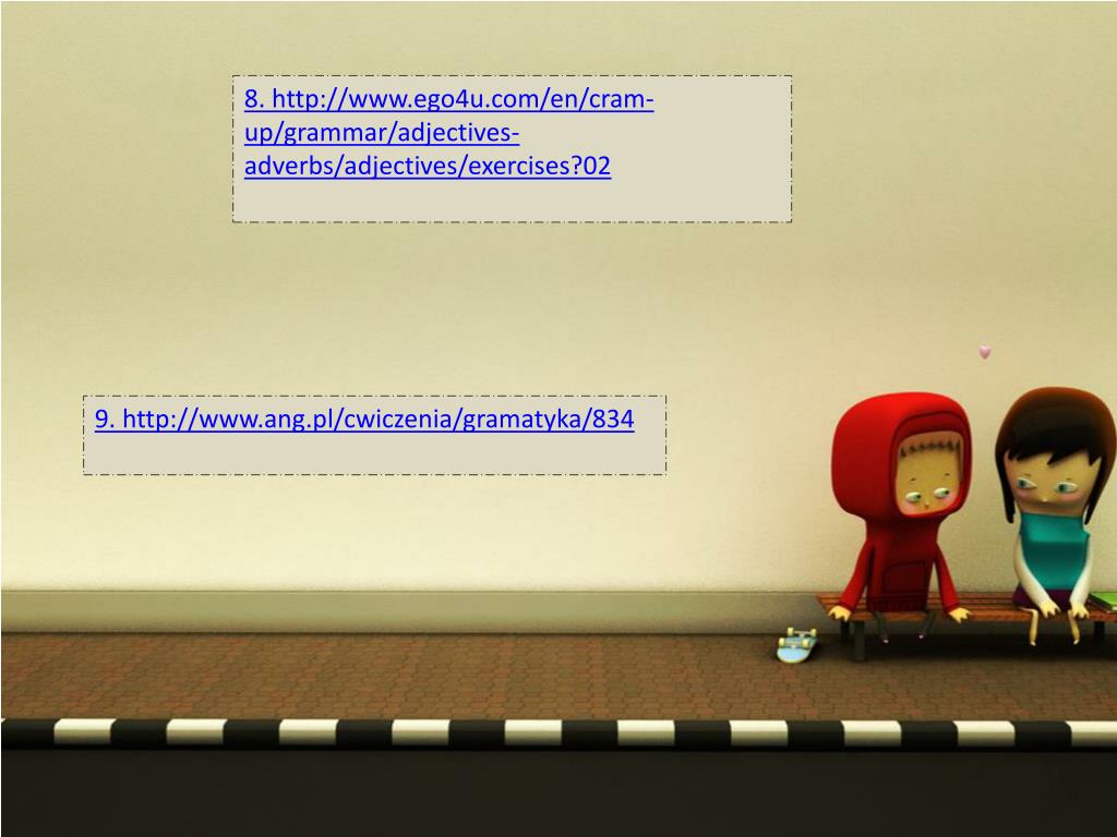 8. http://www.ego4u.com/en/cram-up/grammar/adjectives-adverbs/adjectives/exercises?02 9. http://www.ang.pl/cwiczenia/gramatyka/834