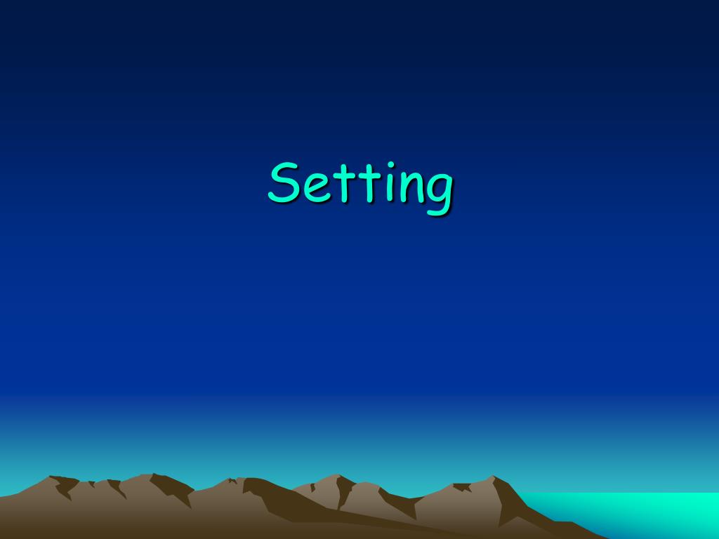 Setting. By- Audryanna Carder . Definition . The place or time when a story takes place. Time is when it is happening like morning, afternoon, evening , month, year, past, and future. Place is where they are in school, home, office, park, any where really. Setting place- The Beach .
