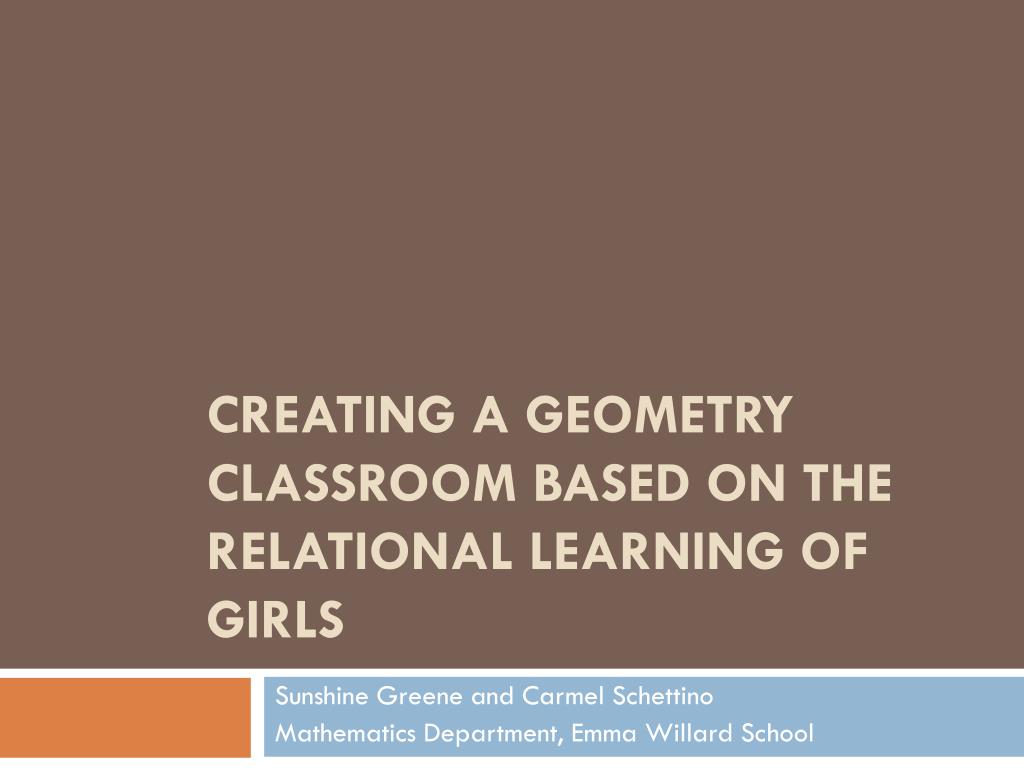 Creating a Geometry Classroom Based on the Relational Learning of Girls Sunshine Greene and Carmel Schettino Mathematics Department, Emma Willard School