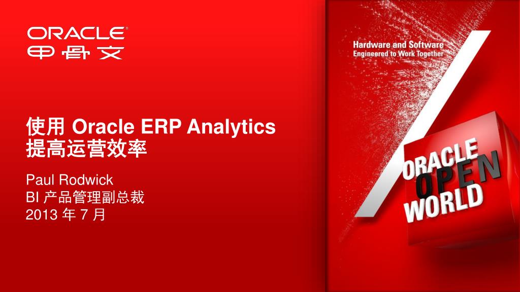 免责声明. 以下内容旨在概述产品的总体发展方向。该内容仅供参考, 不可纳入任何合同。该 内容不 构成提供任何材料、代码或功能的承诺,并且不应该作为制定购买决策的依据。 所描述的有关 Oracle 产品的任何特性或功能的开发、发行 和 时间 规划只能由 Oracle 决定。. 使用 Oracle ERP Analytics 提高 运营效率. Paul Rodwick BI 产品 管理副总裁 2013 年 7 月. Oracle BI 管理软件简介 BI 管理软件 是 什么? 最新 版本 BI 管理 软件 是通向融合管理软件的基石 客户成功案例 路线图和未来投资