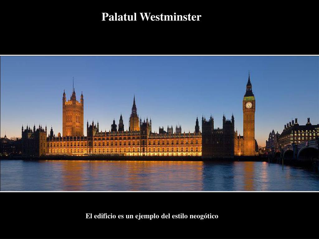 Palatul Westminster El edificio es un ejemplo del estilo neogótico