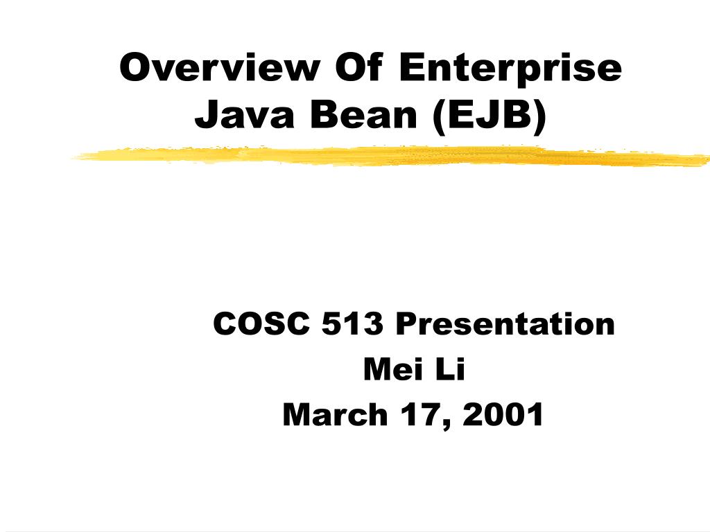 Overview Of Enterprise Java Bean (EJB) COSC 513 Presentation Mei Li March 17, 2001