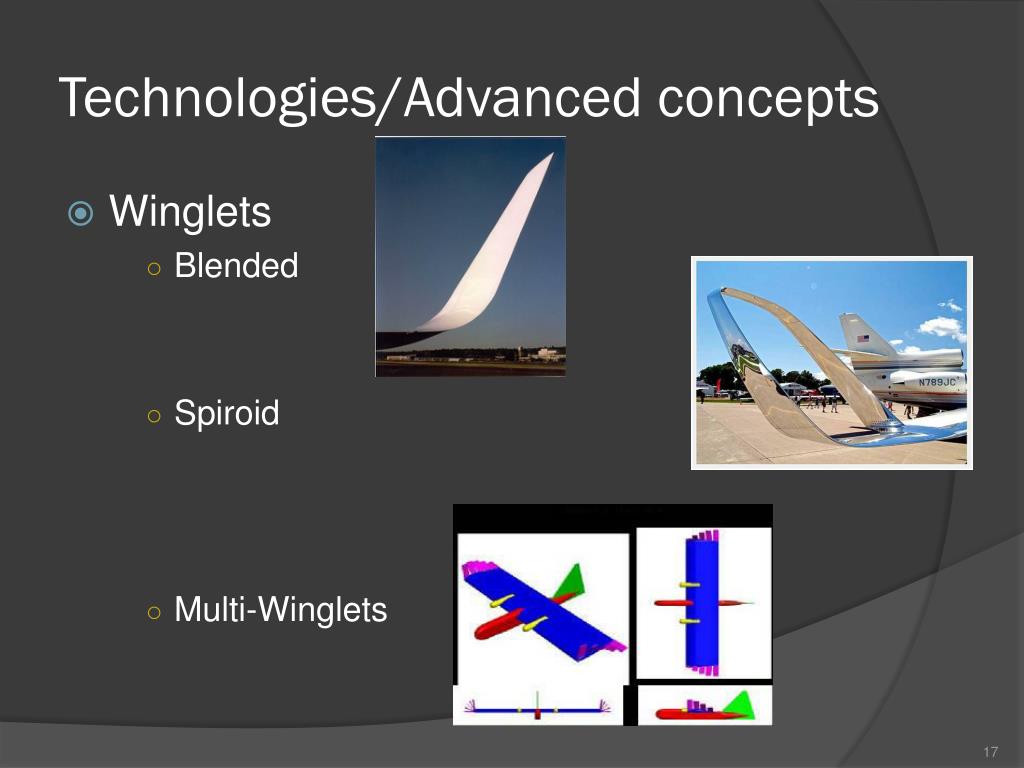 Technologies/Advanced concepts • Winglets • Blended • Spiroid • Multi-Winglets