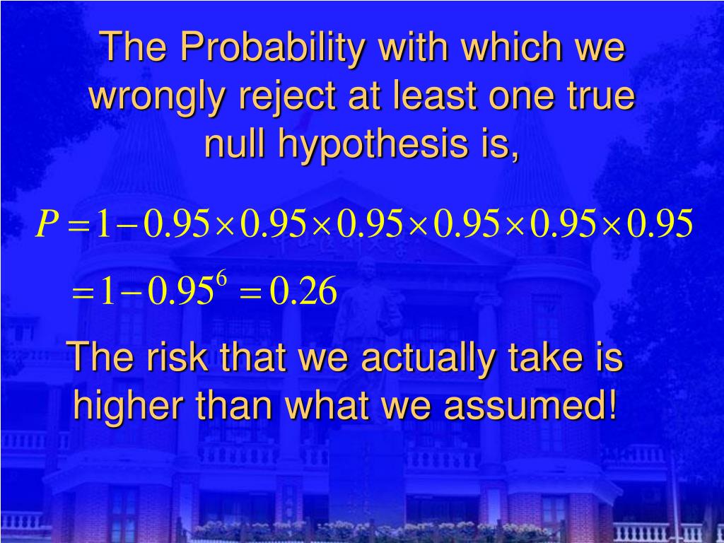 The Probability with which we wrongly reject at least one true null hypothesis is, The risk that we actually take is higher than what we assumed!