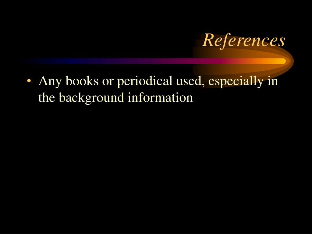 Discussion • Interpretation and discussion of results • Was your hypothesis supported or refuted? • What do your results suggest? • What would you do differently? • What is the next step?