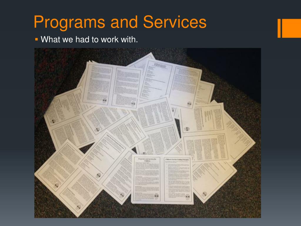 Programs and Services • What we had to work with.