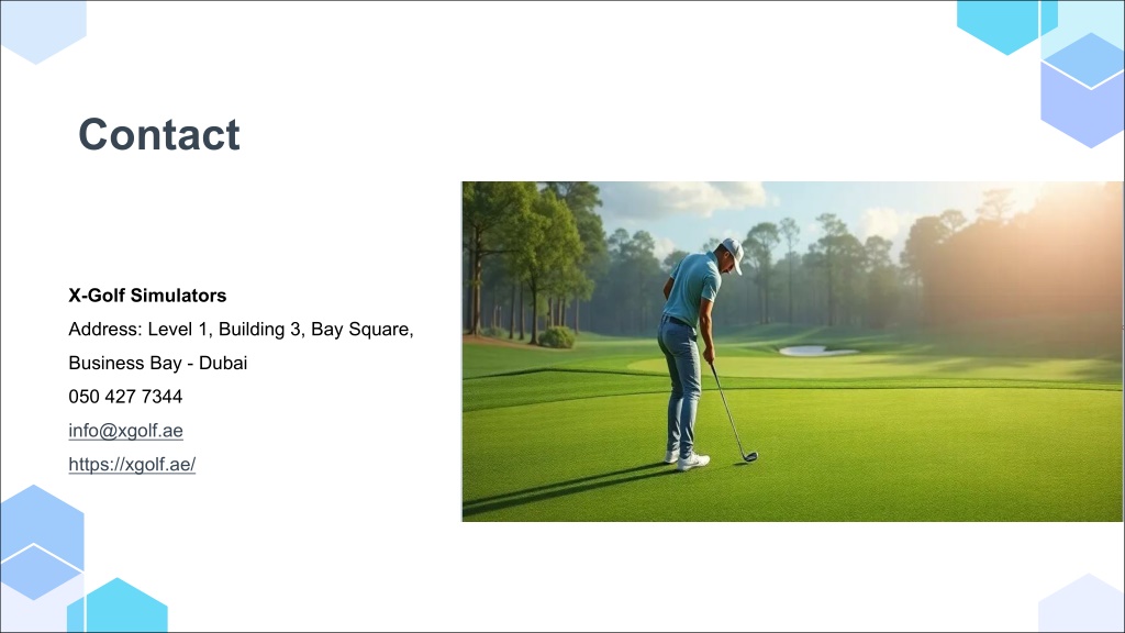 Contact X-Golf Simulators Address: Level 1, Building 3, Bay Square, Business Bay - Dubai 050 427 7344 info@xgolf.ae https://xgolf.ae/
