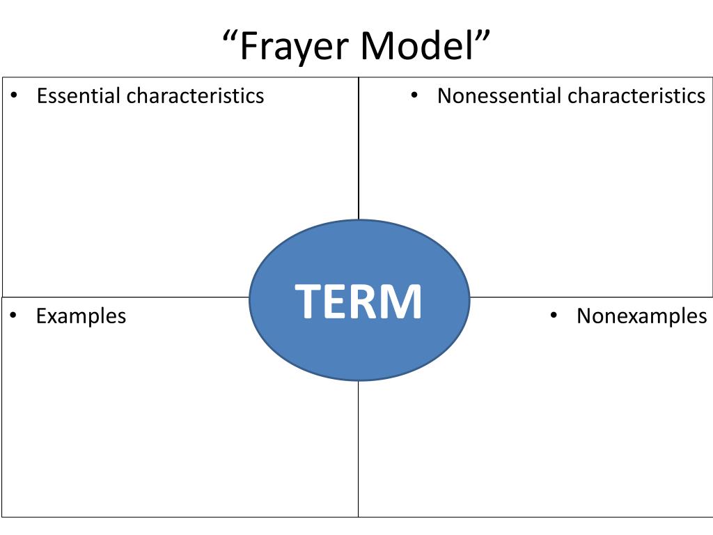 “Frayer Model” • Nonessential characteristics • Essential characteristics TERM • Examples • Nonexamples