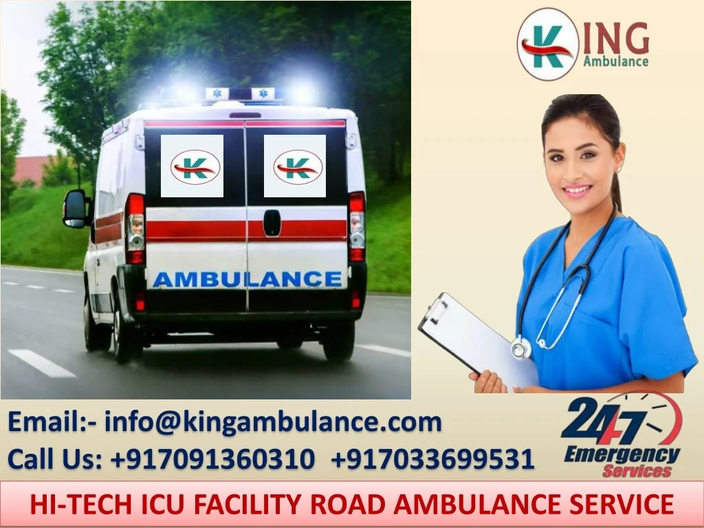 Email:- info@kingambulance.com Call Us: +917091360310, +917033699531 LOW-COST KING ROAD AMBULANCE SERVICE