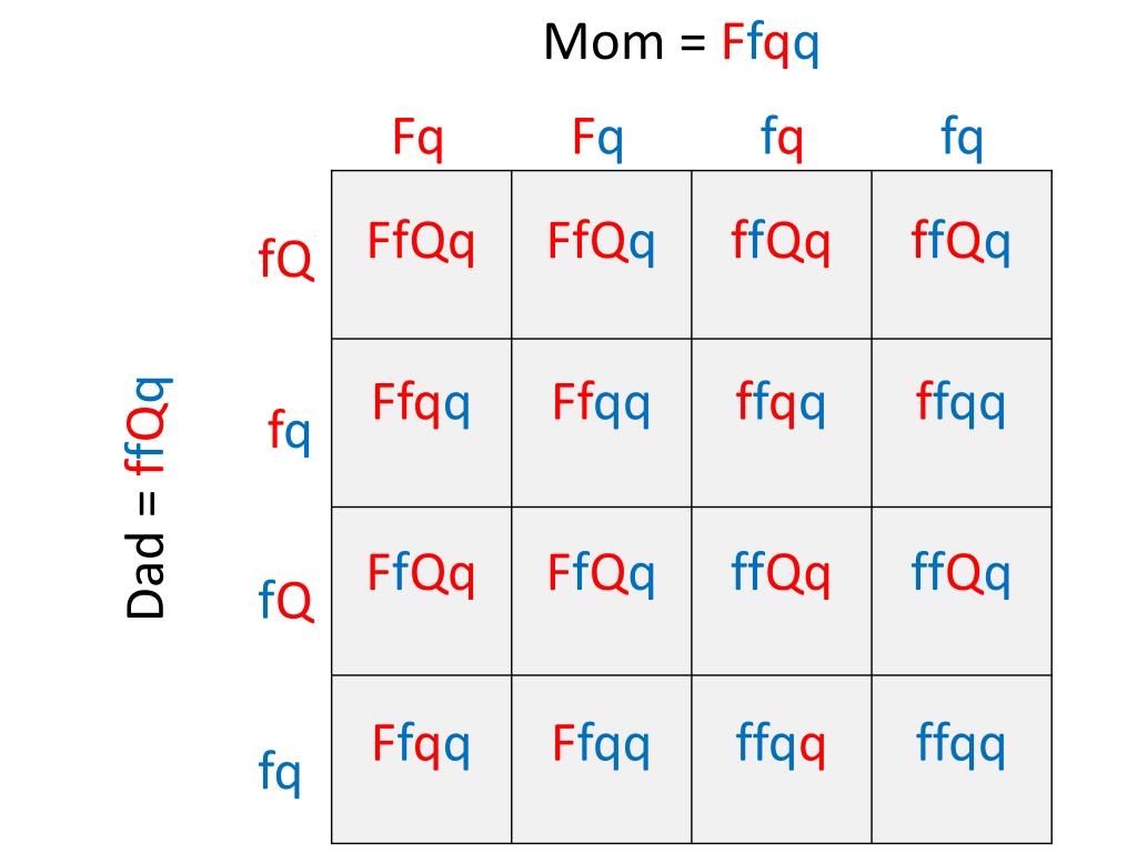 Mom = Ffqq Fq Fq fq fq FfQq FfQq ffQq ffQq NOW LET’S MAKE SOME PREDICTIONS! fQ Normal face, normal skin Normal face, normal skin Hairy face, normal skin Hairy face, normal skin Ffqq Ffqq ffqq ffqq fq Normal face, elephant skin Normal face, elephant skin Hairy face, elephant skin Hairy face, elephant skin Dad =ffQq FfQq FfQq ffQq ffQq fQ Normal face, normal skin Normal face, normal skin Hairy face, normal skin Hairy face, normal skin Ffqq Ffqq ffqq ffqq fq Normal face, elephant skin Normal face, elephant skin Hairy face, elephant skin Hairy face, elephant skin