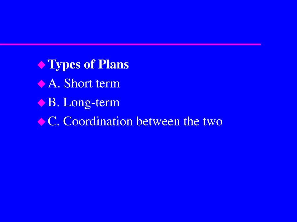 Types of Plans • A. Short term • B. Long-term • C. Coordination between the two