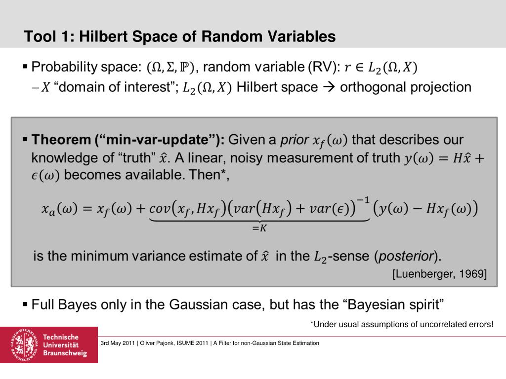 Tool 1: Hilbert Space of Random Variables [Luenberger, 1969] *Under usual assumptions of uncorrelated errors! 3rd May 2011 | Oliver Pajonk, ISUME 2011 | A Filter for non-Gaussian State Estimation