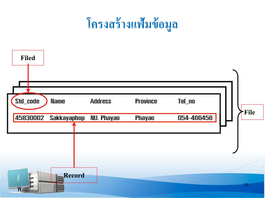 โครงสร้างแฟ้มข้อมูล Filed File Record