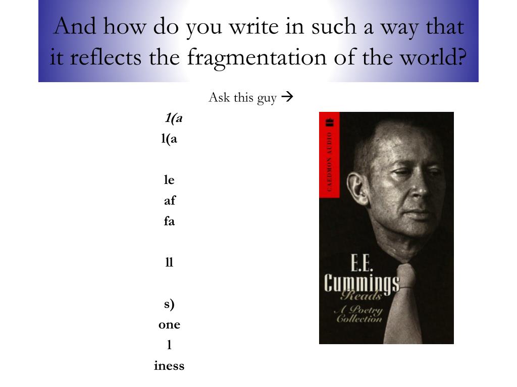 And how do you write in such a way that it reflects the fragmentation of the world? Ask this guy 1(a l(a le af fa ll s) one l iness