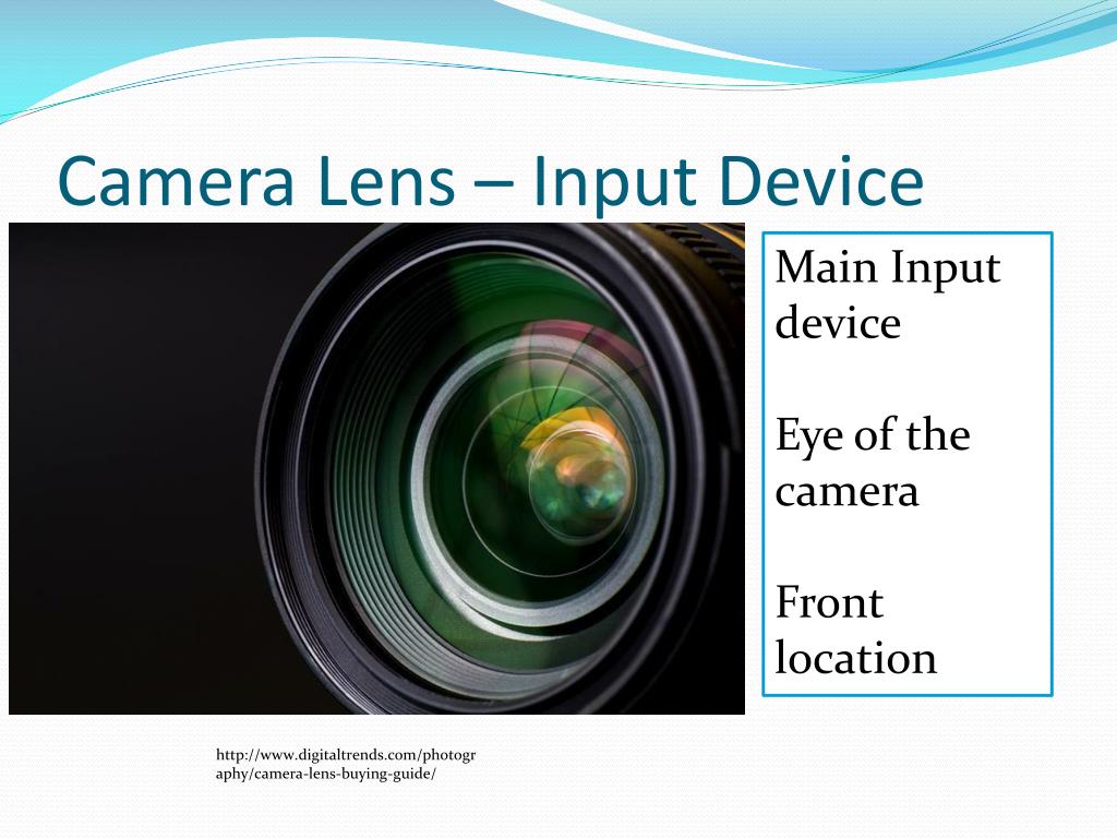 4. Camera Lens – Input Device Main Input device Eye of the camera Front location http://www.digitaltrends.com/photography/camera-lens-buying-guide/