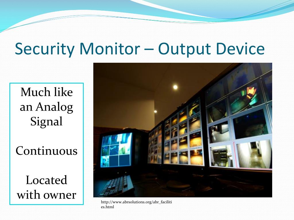 8. Security Monitor – Output Device Much like an Analog Signal Continuous Located with owner http://www.abrsolutions.org/abr_facilities.html
