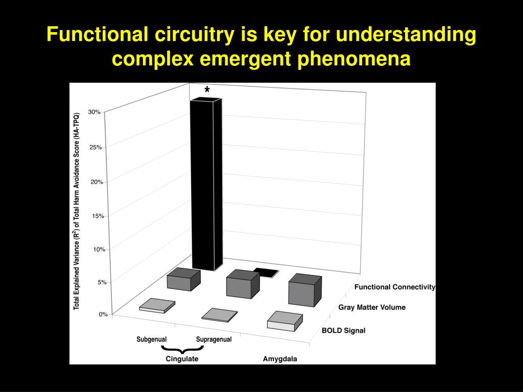 IMAGING GENOMICS Behavior: complex functional interactions and emergent phenomena Cells: Subtle molecular alterations Systems: response bias to environmental cues The path from here to there… Genes: multiple susceptibility alleles each of small effect