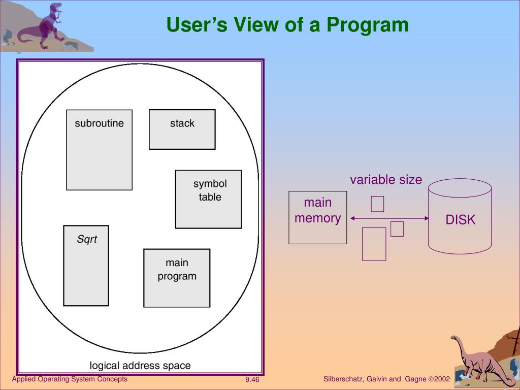 User’s View of a Program variable size main memory DISK Applied Operating System Concepts