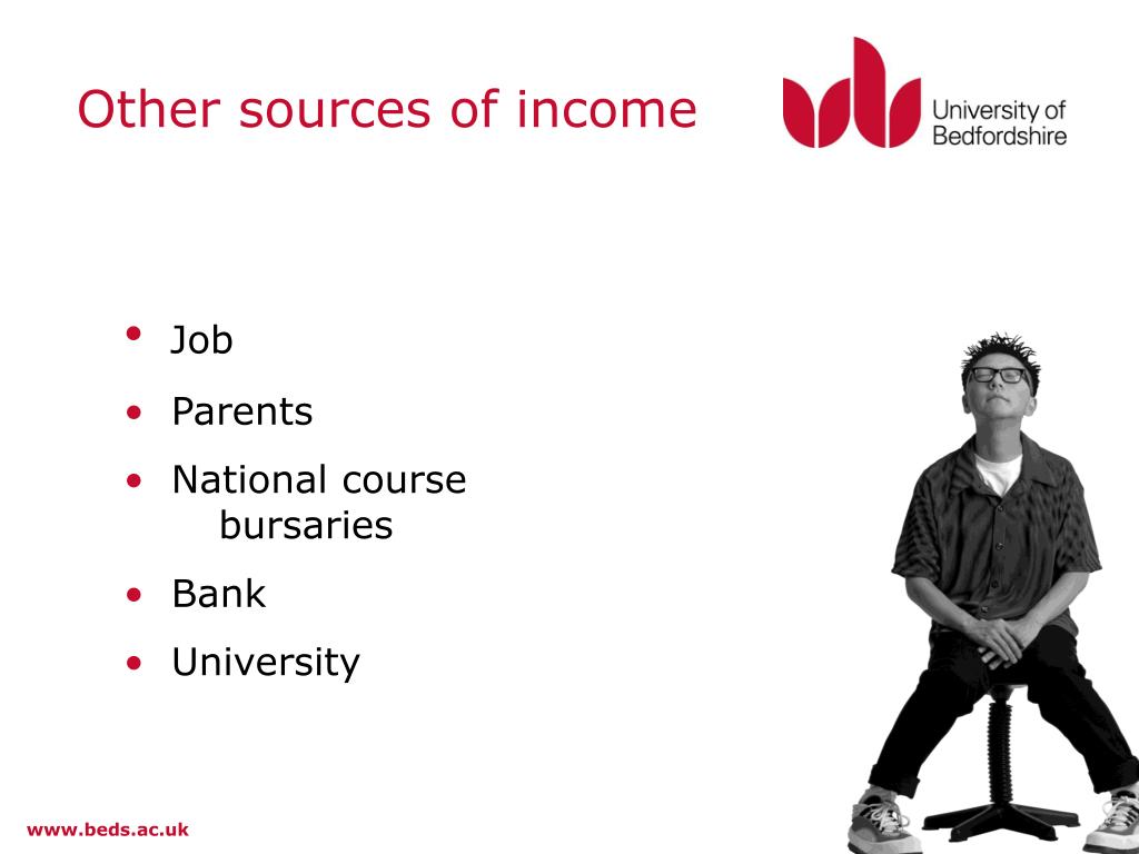 Other sources of income • Job • Parents • National course bursaries • Bank • University www.beds.ac.uk