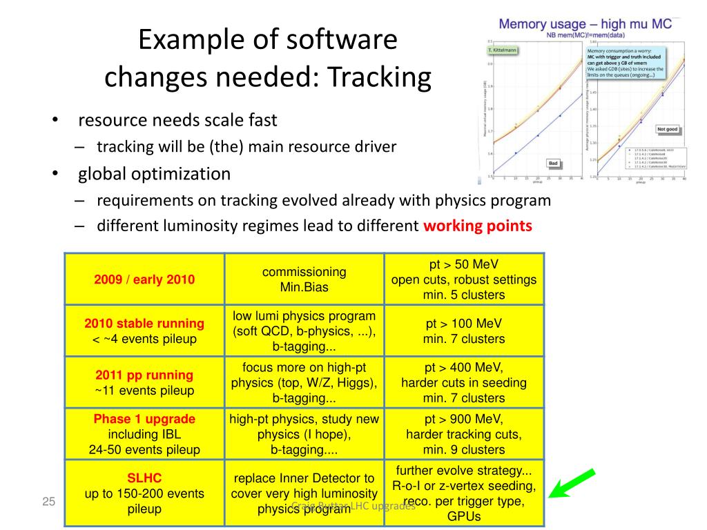 Example of software changes needed: Tracking • resource needs scale fast • tracking will be (the) main resource driver • global optimization • requirements on tracking evolved already with physics program • different luminosity regimes lead to different working points Craig Buttar LHC upgrades