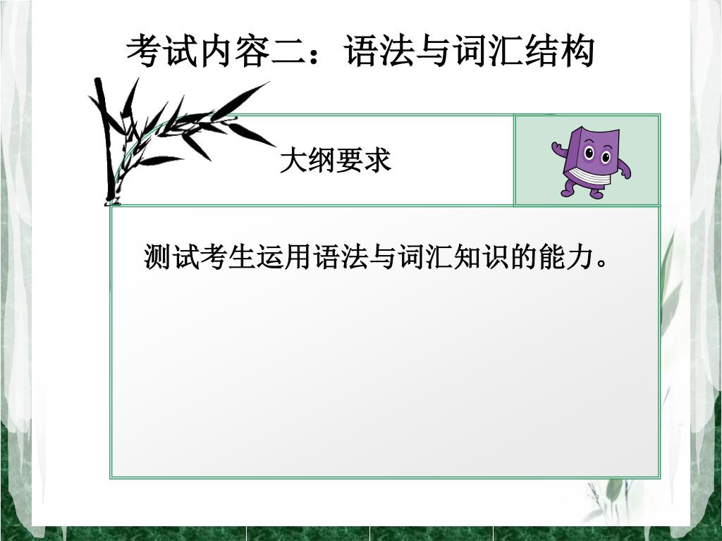 考试内容二:语法与词汇结构 大纲要求 测试考生运用语法与词汇知识的能力。