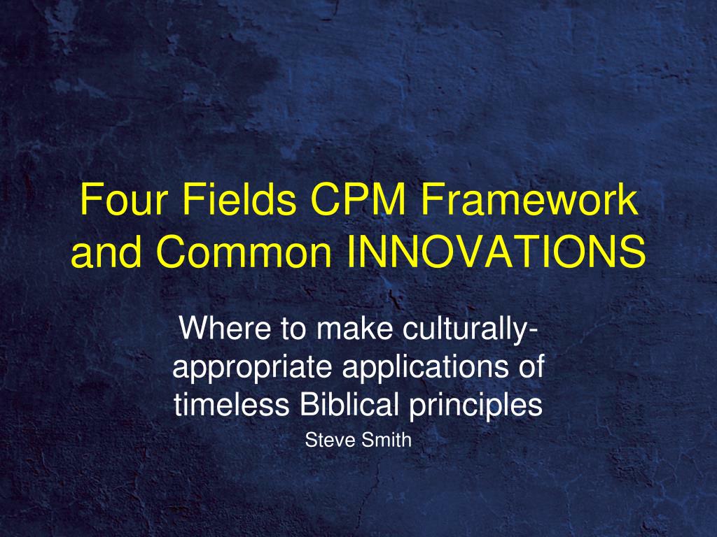 Four Fields CPM Framework and Common INNOVATIONS. Where to make culturally-appropriate applications of timeless Biblical principles Steve Smith. What are the basic ingredients of healthy, sustained church planting movements?. Four Fields CPM Plan.