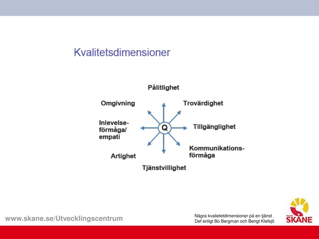 Några kvalietetdimensioner på en tjänstDef enligt Bo Bergman och Bengt Klefsjö