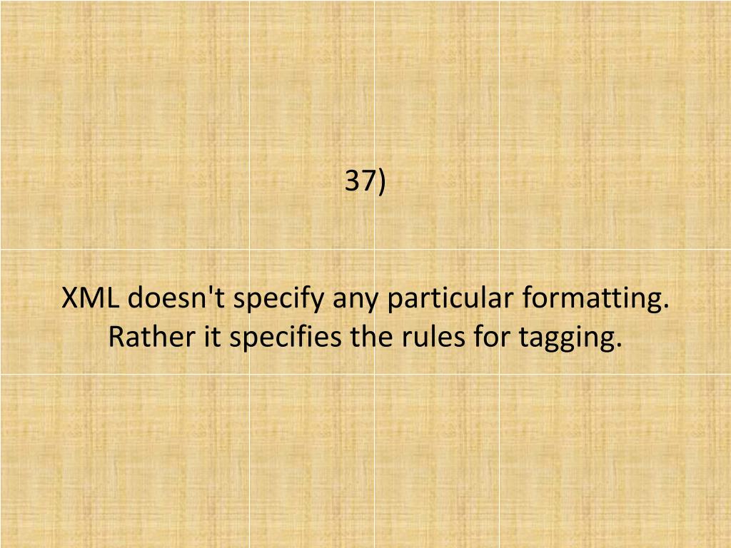 37) XML doesn't specify any particular formatting. Rather it specifies the rules for tagging.