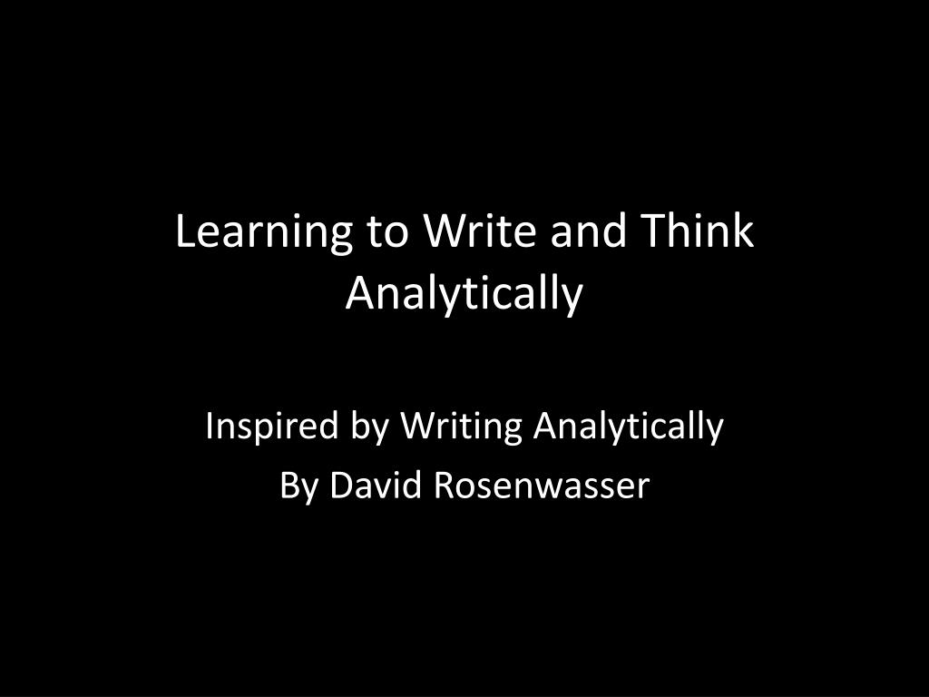 Learning to Write and Think Analytically Inspired by Writing Analytically By David Rosenwasser