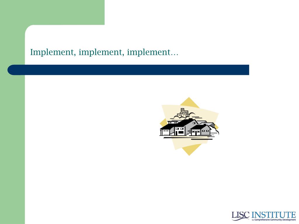 Convene Smaller Planning Body Create plans that will, over time, accomplish the vision Recruit leaders/sponsors to implement the plans elements Begin to seek sources of support Implement early action projects – “planning while doing” – proving it is more than just talk.