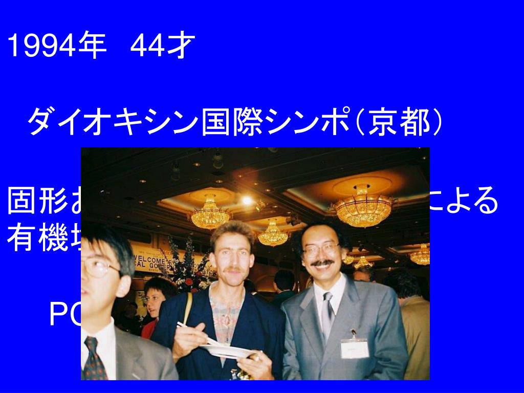 1986年 36才 ダイオキシン国際シンポ(福岡) 日本で初めて 環境大気中でダイオキシン検出 都市大気のダイオキシン・PCB・クロルデン・DDT濃度レベルを報告