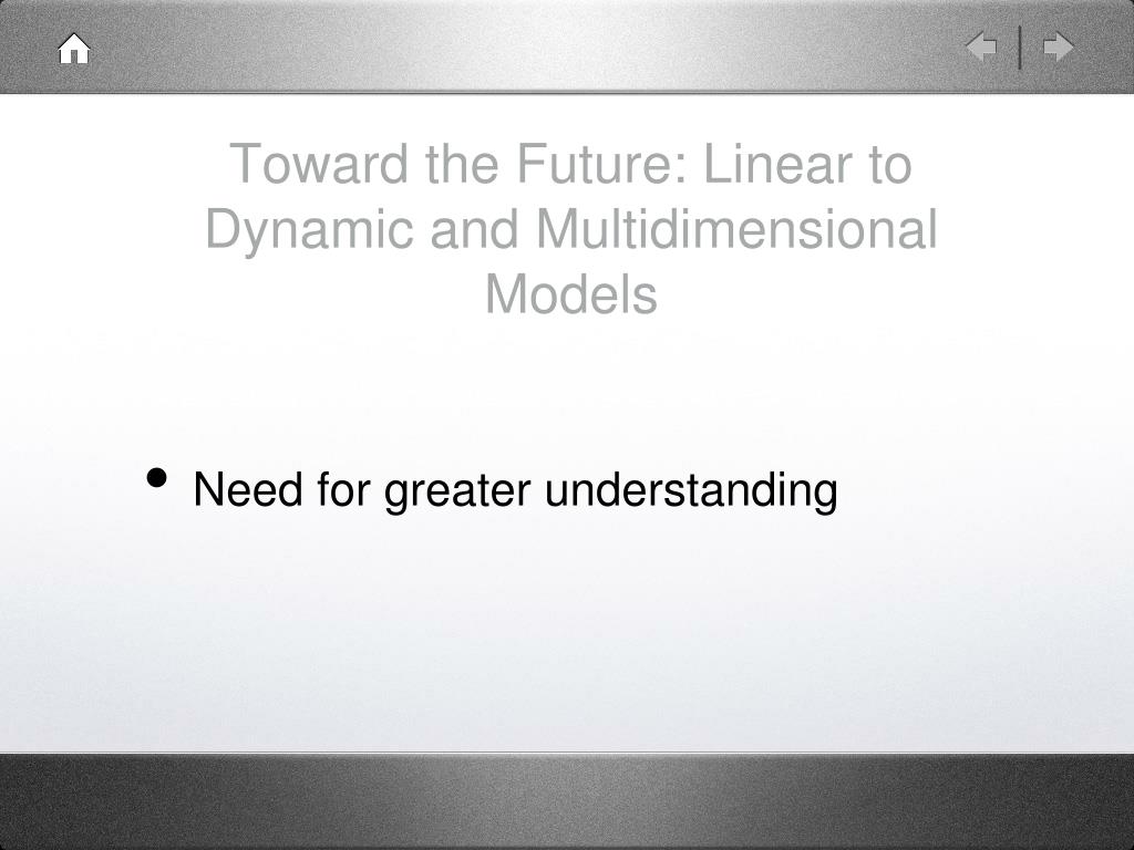 Toward the Future: Linear to Dynamic and Multidimensional Models • Need for greater understanding