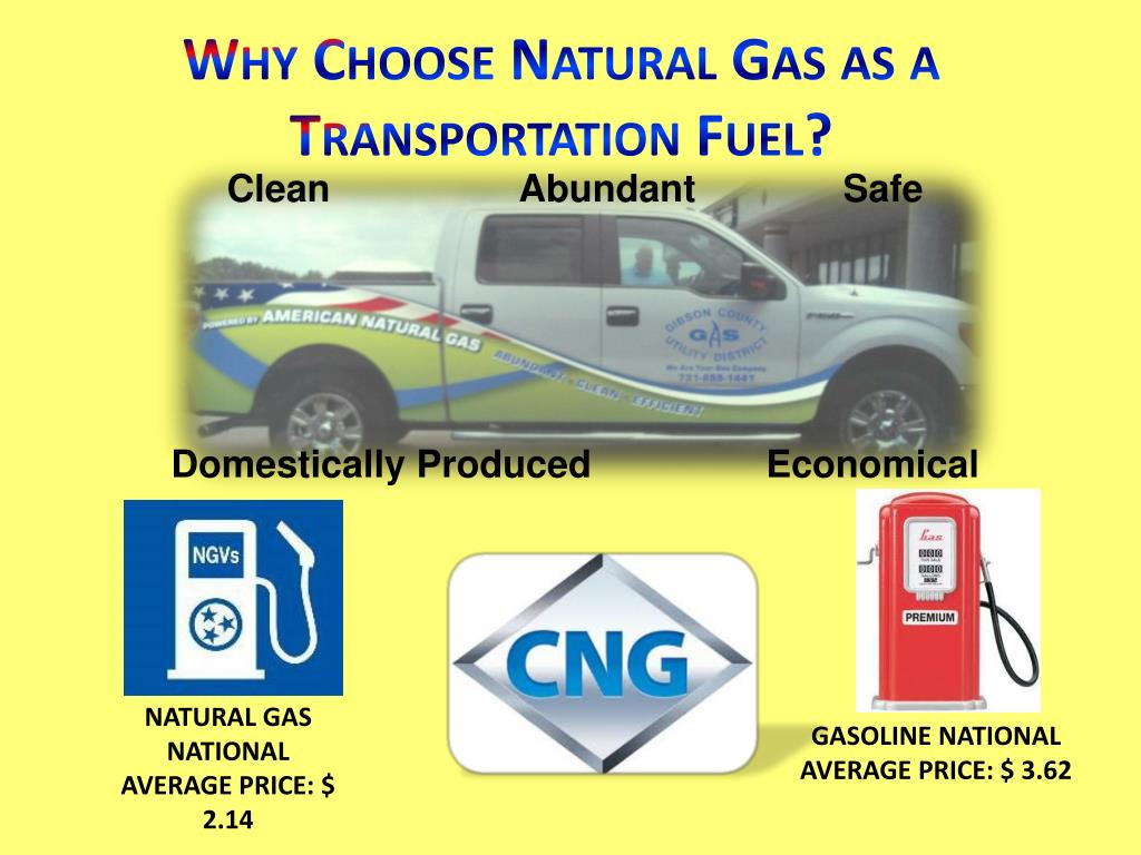 Why Choose Natural Gas as a Transportation Fuel? CleanAbundant Safe Domestically ProducedEconomical NATURAL GAS NATIONAL AVERAGE PRICE: $ 2.14 GASOLINE NATIONAL AVERAGE PRICE: $ 3.62