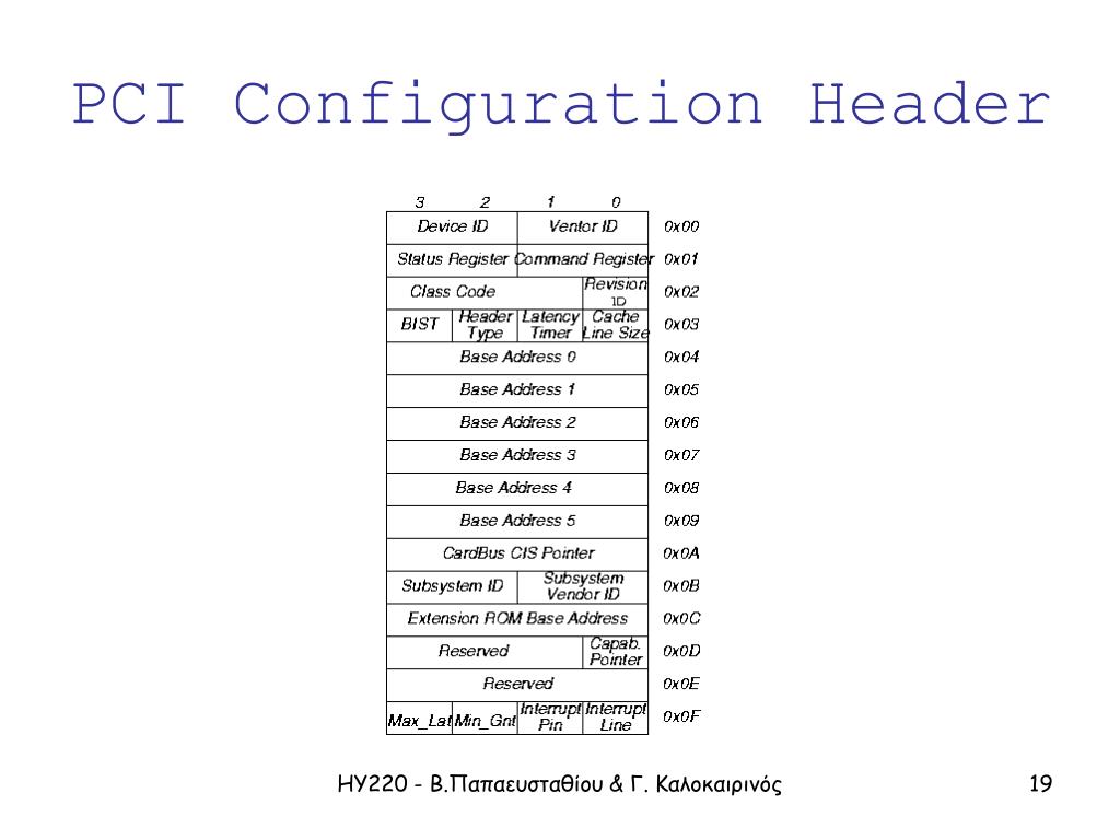 PCI Configuration Header ΗΥ220 - Β.Παπαευσταθίου & Γ. Καλοκαιρινός