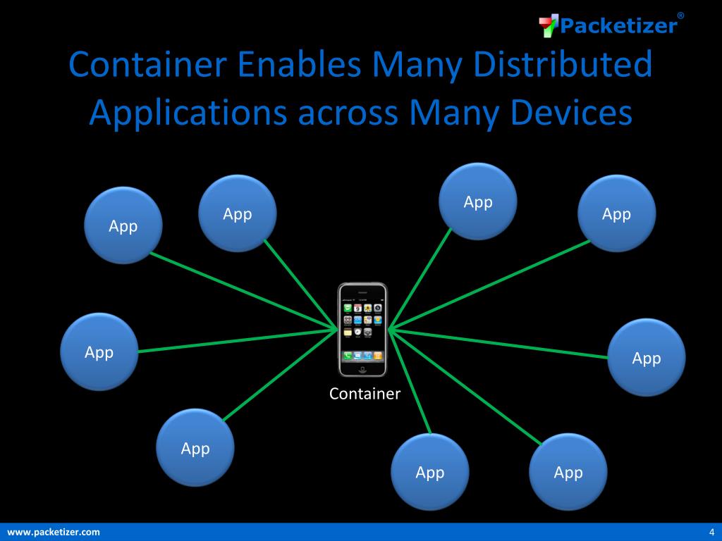 Container Enables Many Distributed Applications across Many Devices App App App App App App Container App App App
