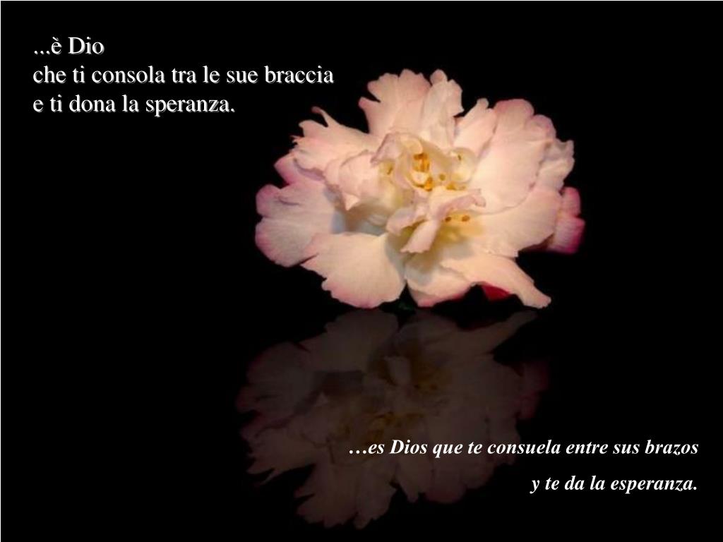 ...è Dio che ti consola tra le sue braccia e ti dona la speranza. …es Dios que te consuela entre sus brazos y te da la esperanza.