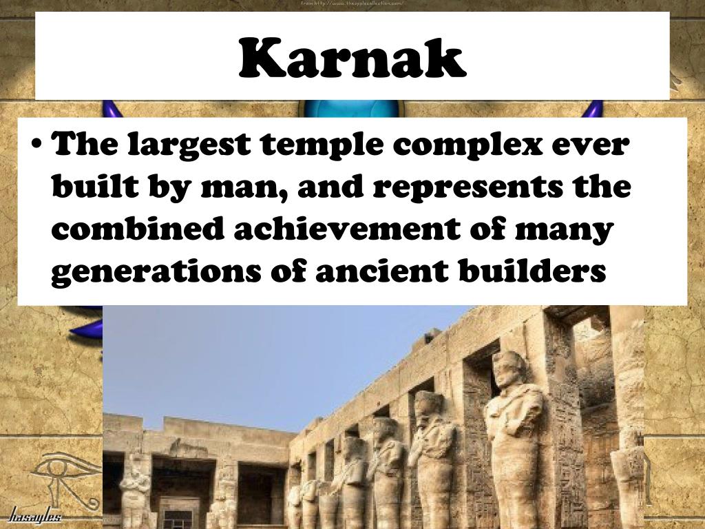 Karnak • The largest temple complex ever built by man, and represents the combined achievement of many generations of ancient builders